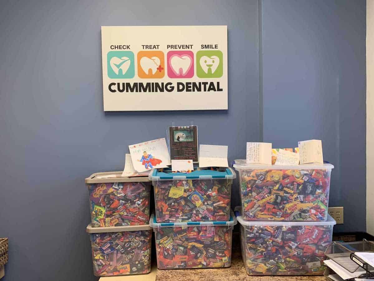 Halloween Candy Buy Back encourages kids around America to donate their Halloween candy to give to troops overseas. Two organizations that will be receiving the donations from our office are Move America Forward and Operation Shoebox. This charitable event is an awesome way to support our troops and reduce the consumption of sugars by our children. Cumming Dental Smiles collected over 350 pounds of candy from local schools, subdivisions, and neighbors.