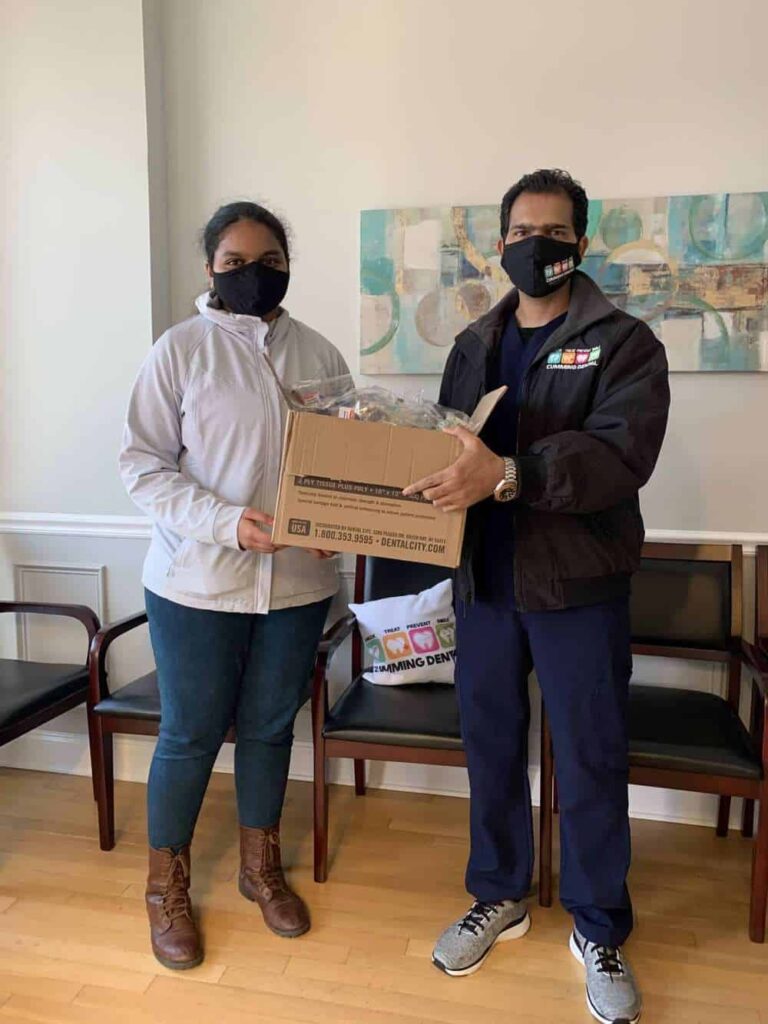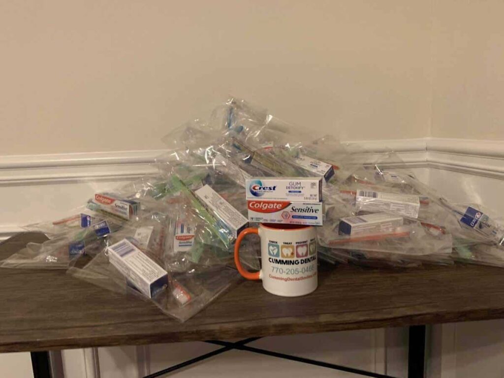 Dr.Gudipati at Cumming Dental Smiles donated 55 Oral Hygiene Packets includes toothbrushes and toothpastes to the non profit organization called “ Project No Bounds”.