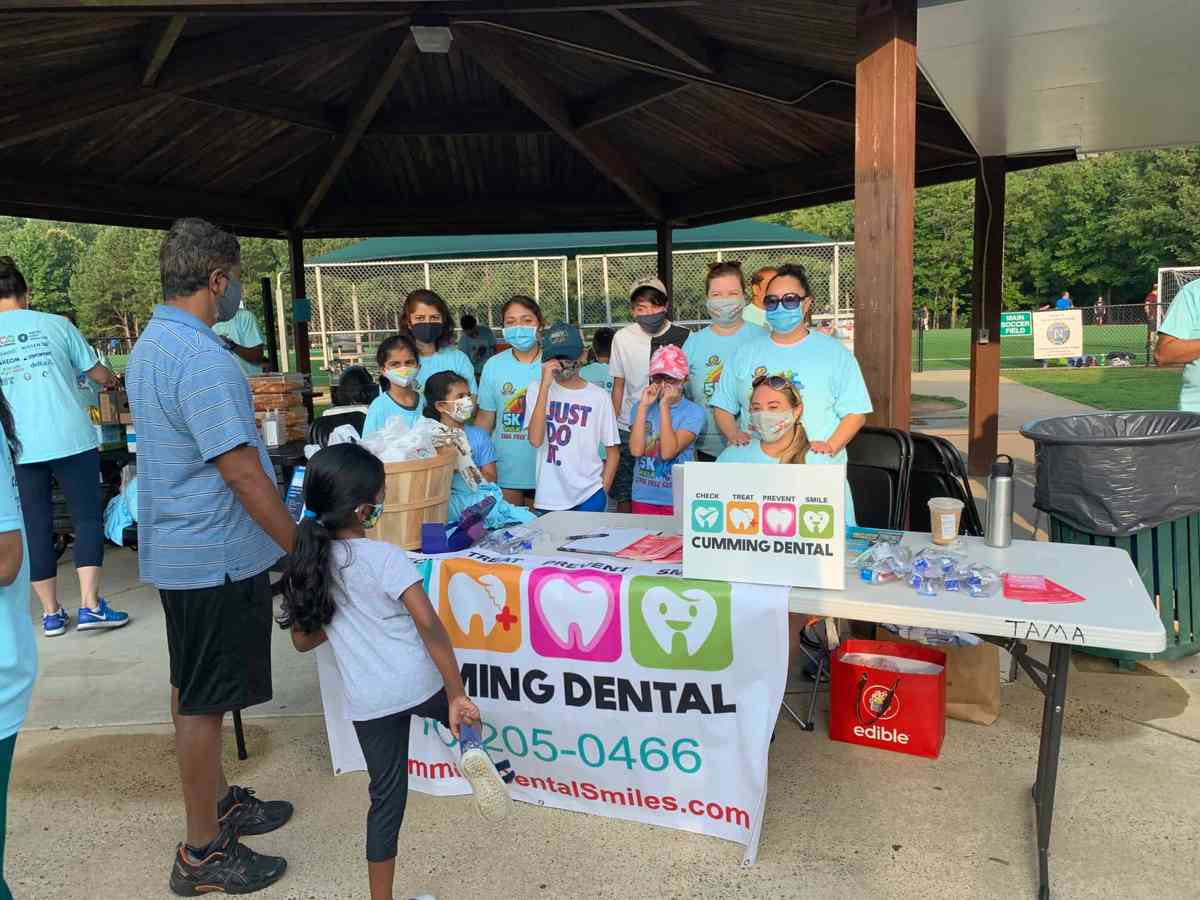 The whole team of Cumming Dental Smiles and the kids participated in the event. Donated Oral Hygiene kits to 200 people along with tote bags.