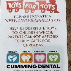 Toys for Tots at Cumming Dental Smiles made a small contribution to better our community and also bring Joy and happiness to the children in need.