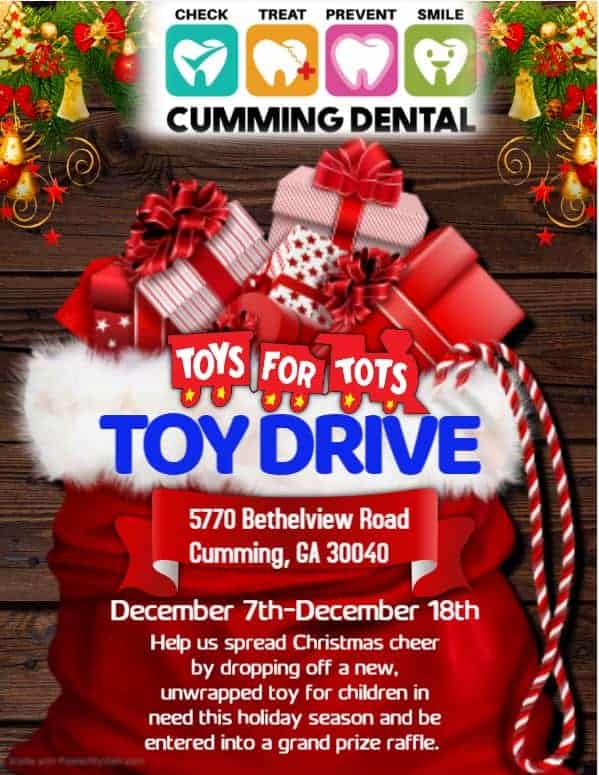 Cumming Dental Smiles is proud to participate in the Toys For Tots Event and is one of the Official drop off site for Toys. This is our 3rd Year doing this awesome event. The Toys For Tots program run by the US Marine corps Reserve which distributes toys for children whose parents cannot afford to buy them gifts for Christmas. We collected more than 50 toys and gave it to the event. We thank all our team members, neighbors and patients who came and donated toys for this event.